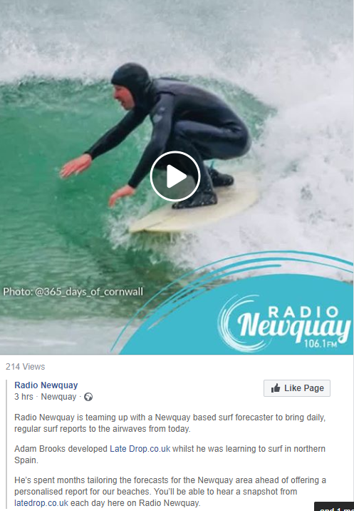 My cousin is riding high, he has teamed up with radio Newquay to provide daily surf reports for Newquay & the surrounding areas.