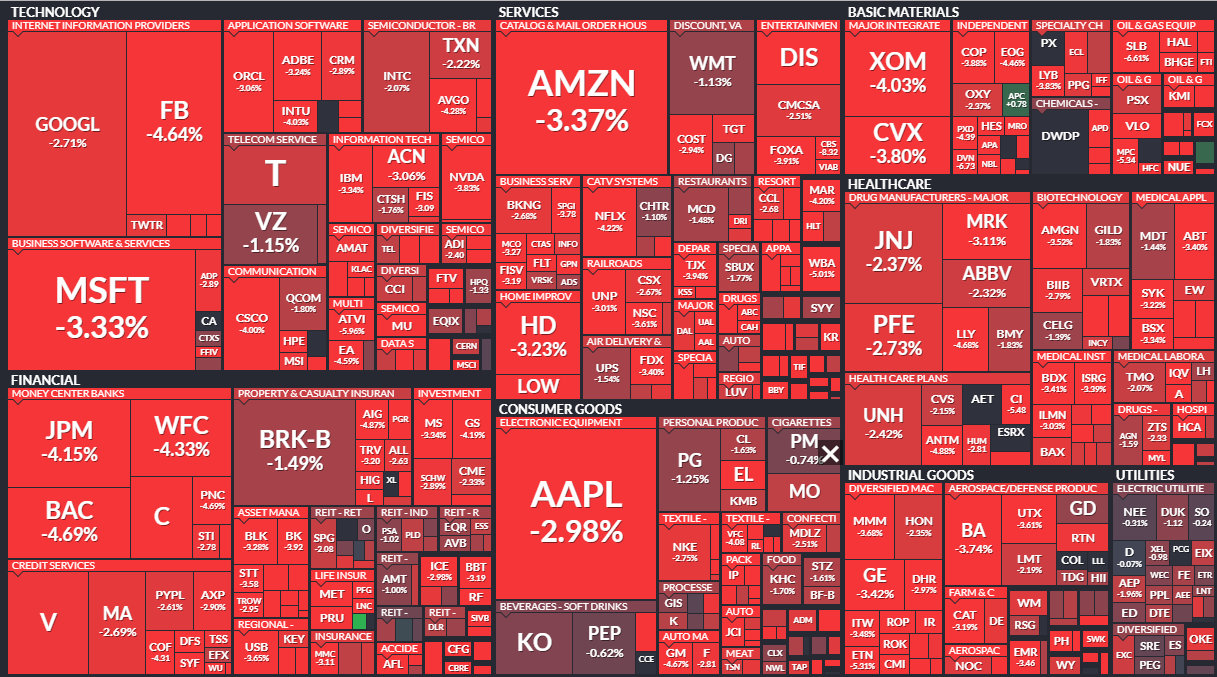 Below is yesterdays stock heatmap across the S&P500 sectors, there’s a few specs of green if you look closely enough.