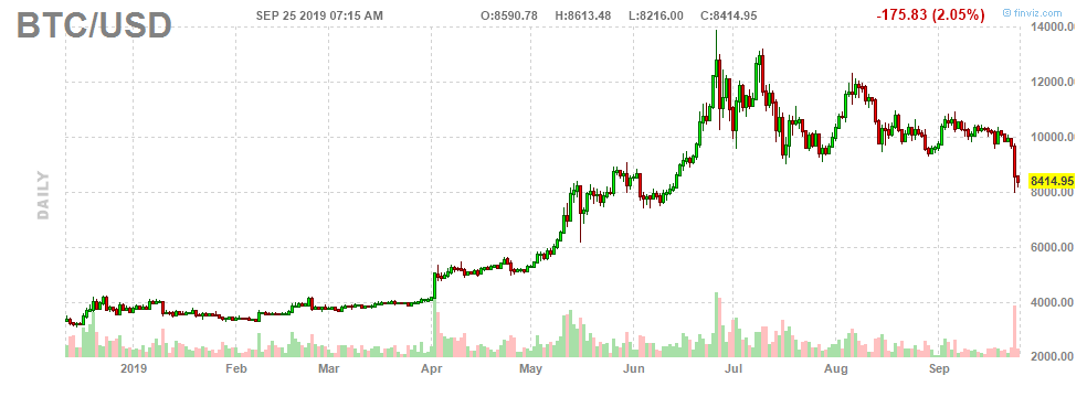 Whilst bitcoin shed 11% approx, straight down to around 8000 support.