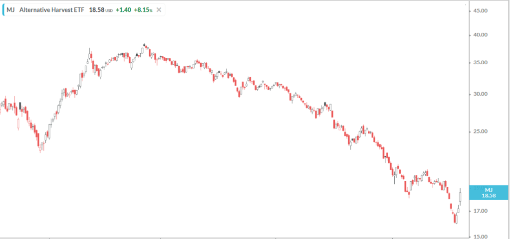 Its been a tough year for weed stocks as you can see in the sector ETF $MJ below: