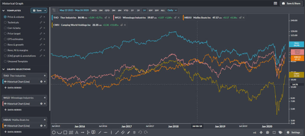 In the new Covid world RV’s are having their own renaissance after being in a steady multi year downtrend.