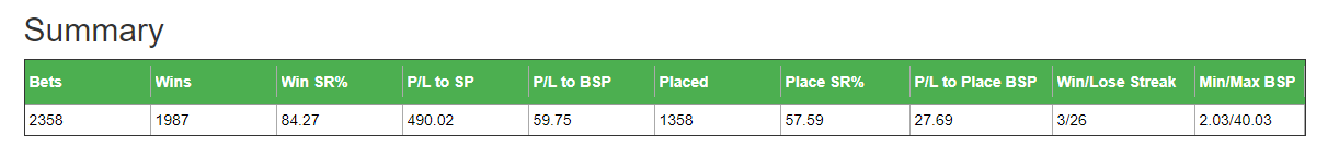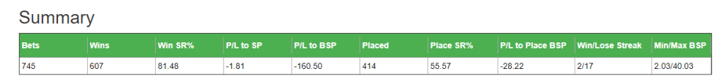 Using Inform racings database this is what it looks like from 2017 to today.