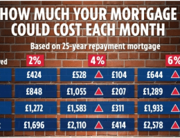 Predicted mortgage monthly repayments. Based on interest rate forecasts. from The Sun.